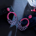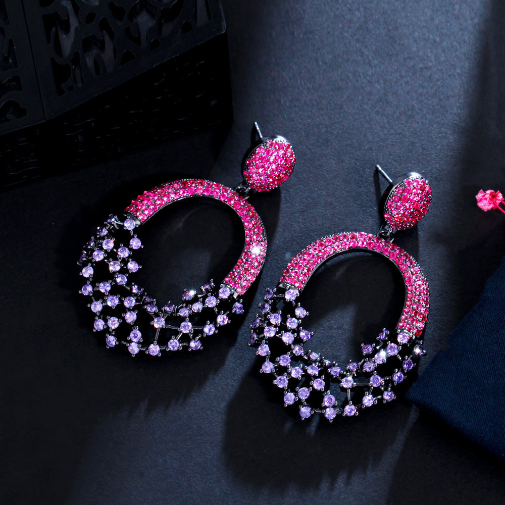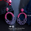 Elegant Hollow Out Purple Red Cubic Zirconia Crystal Engagement Wedding Big Dangle Earrings for Women