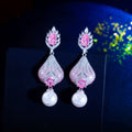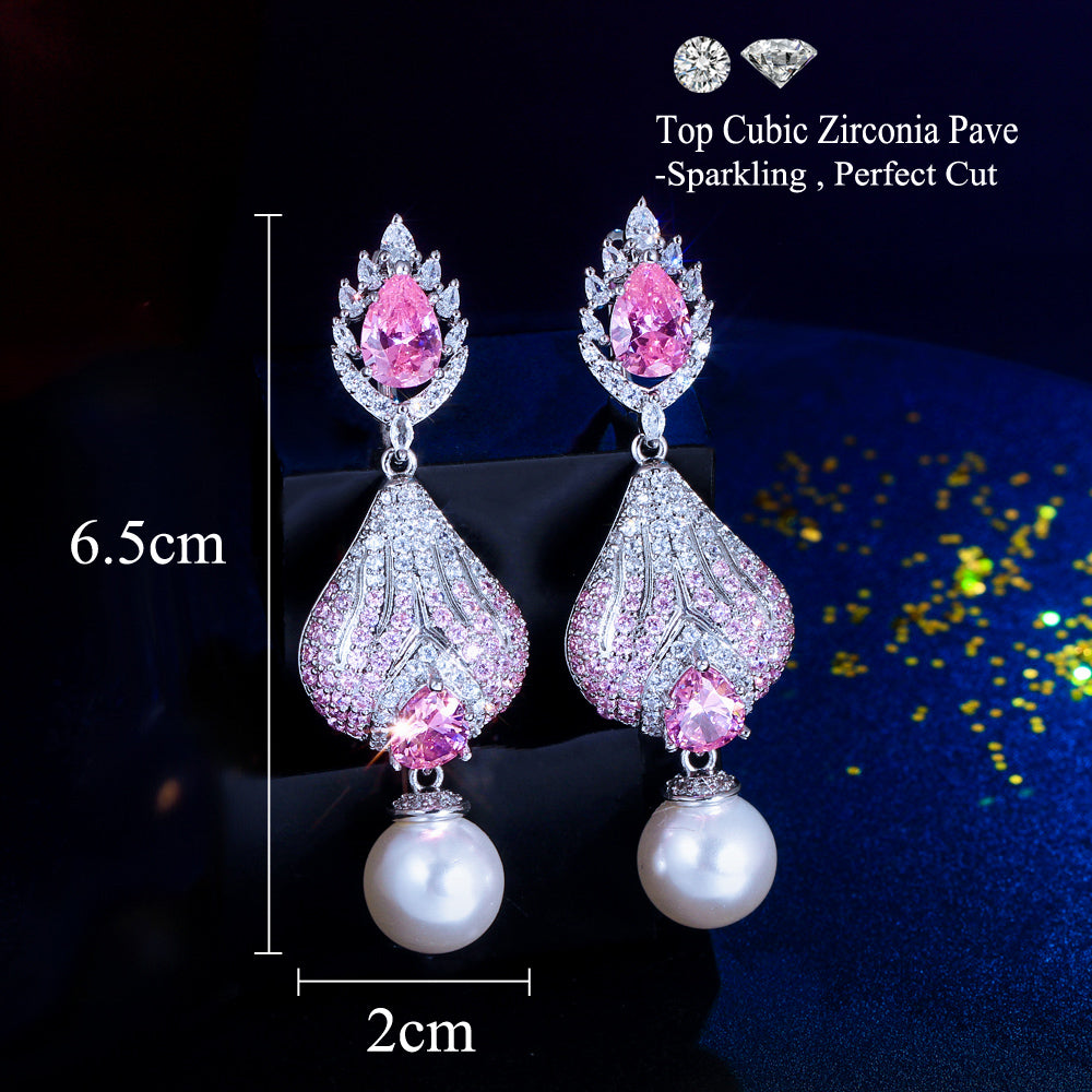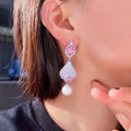 Luxury Chunky Pink White Cubic Zirconia Earrings for Women Festival Party Jewelry